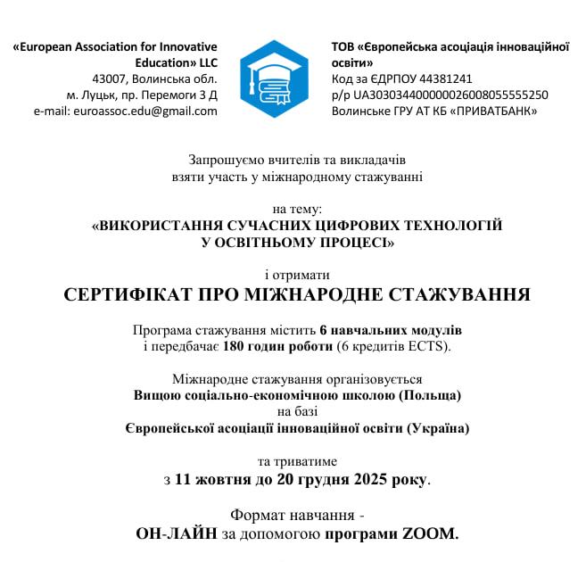 Детальну інформацію можна отримати за телефоном – 099-733-16-94 Олена Анатоліївна.