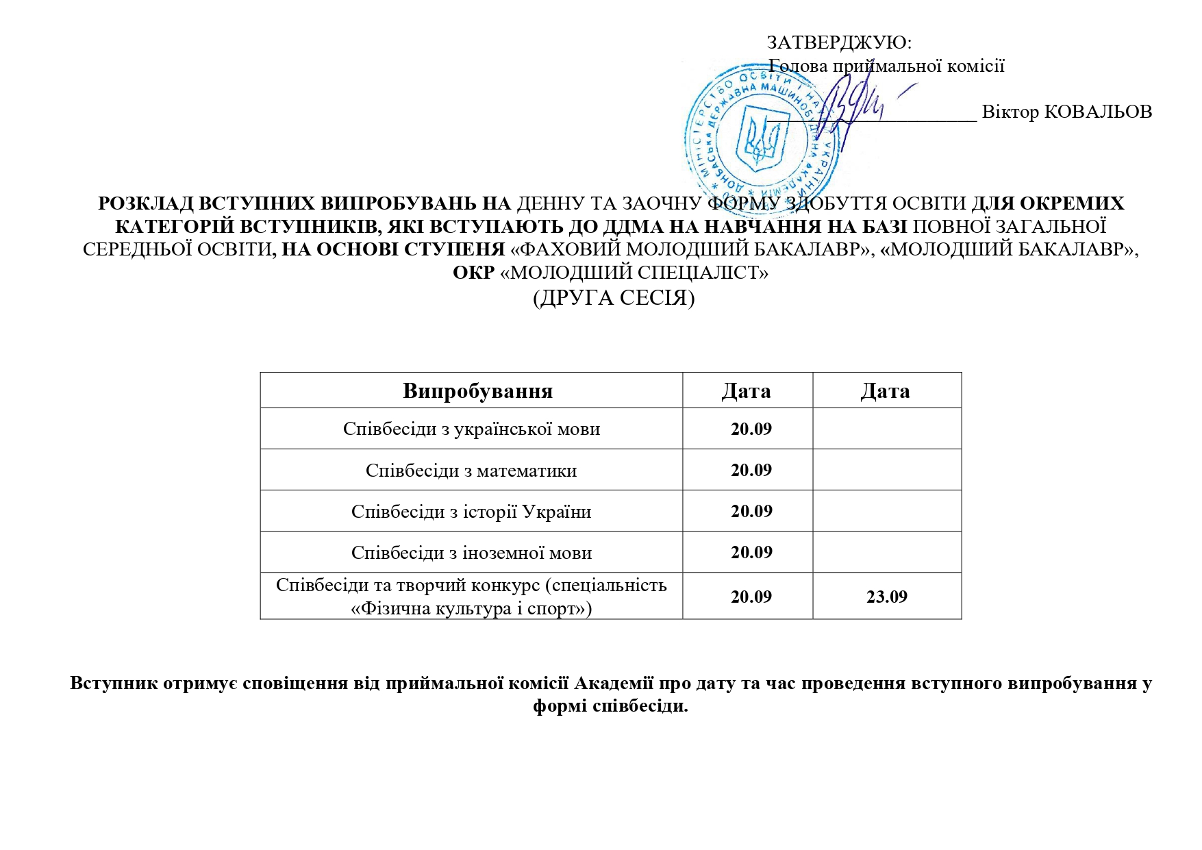 - Розклад заліково-екзаменаційної сесії денної форми навчання