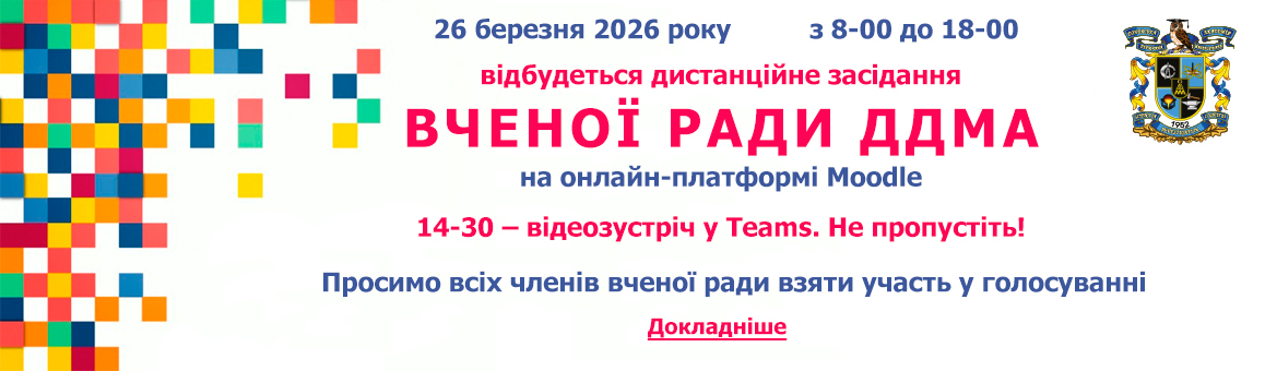 26 березня 2026 року відбудеться дистанційне засідання Вченої ради, відкрите голосування з питань порядку денного з використанням платформи MOODLE...