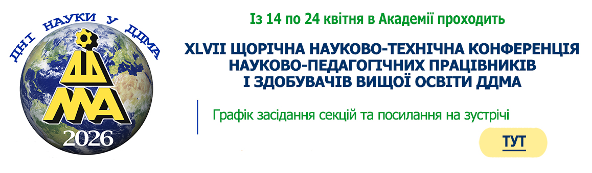 Сьогодні в рамках XLVІІ Науково-технічної конференції науково-педагогічних працівників і здобувачів вищої освіти ДДМА відбудеться онлайн-засідання...