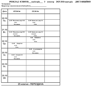 Табель-календар освітнього процесу на 2025-2026 навчальний рік (денна форма)